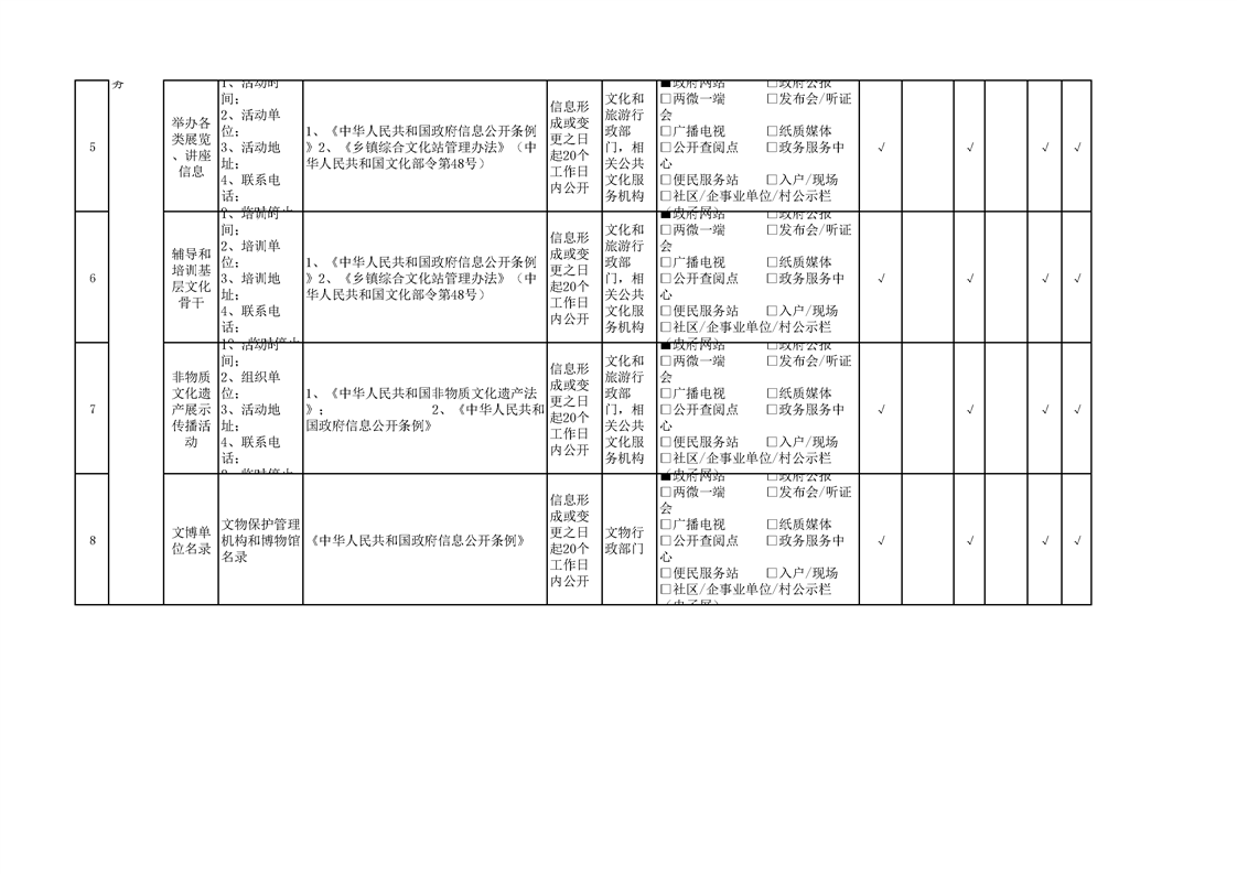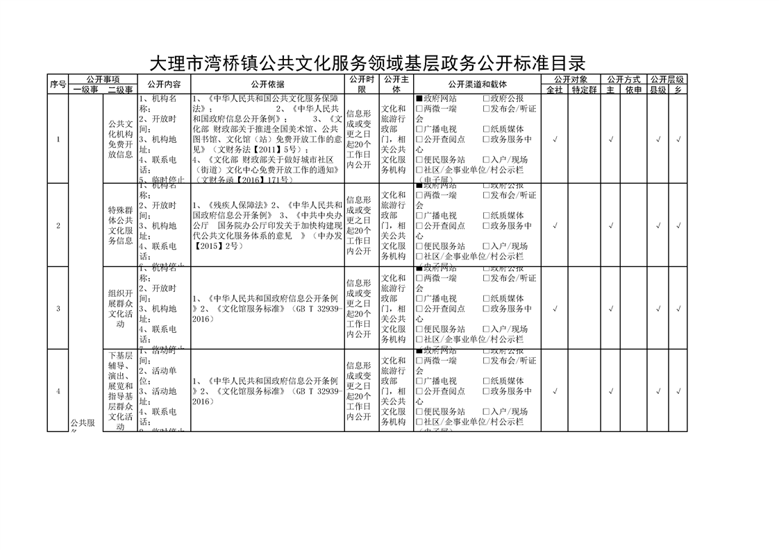 大理市湾桥镇公共文化服务领域基层政务公开标准目录