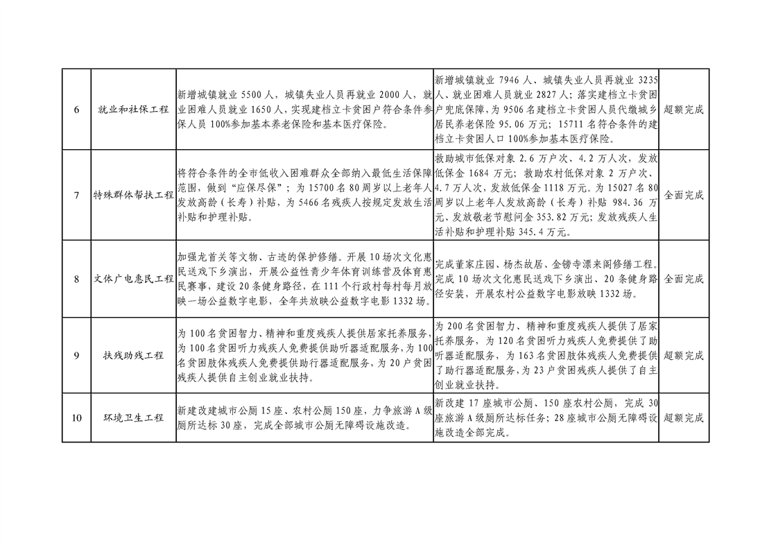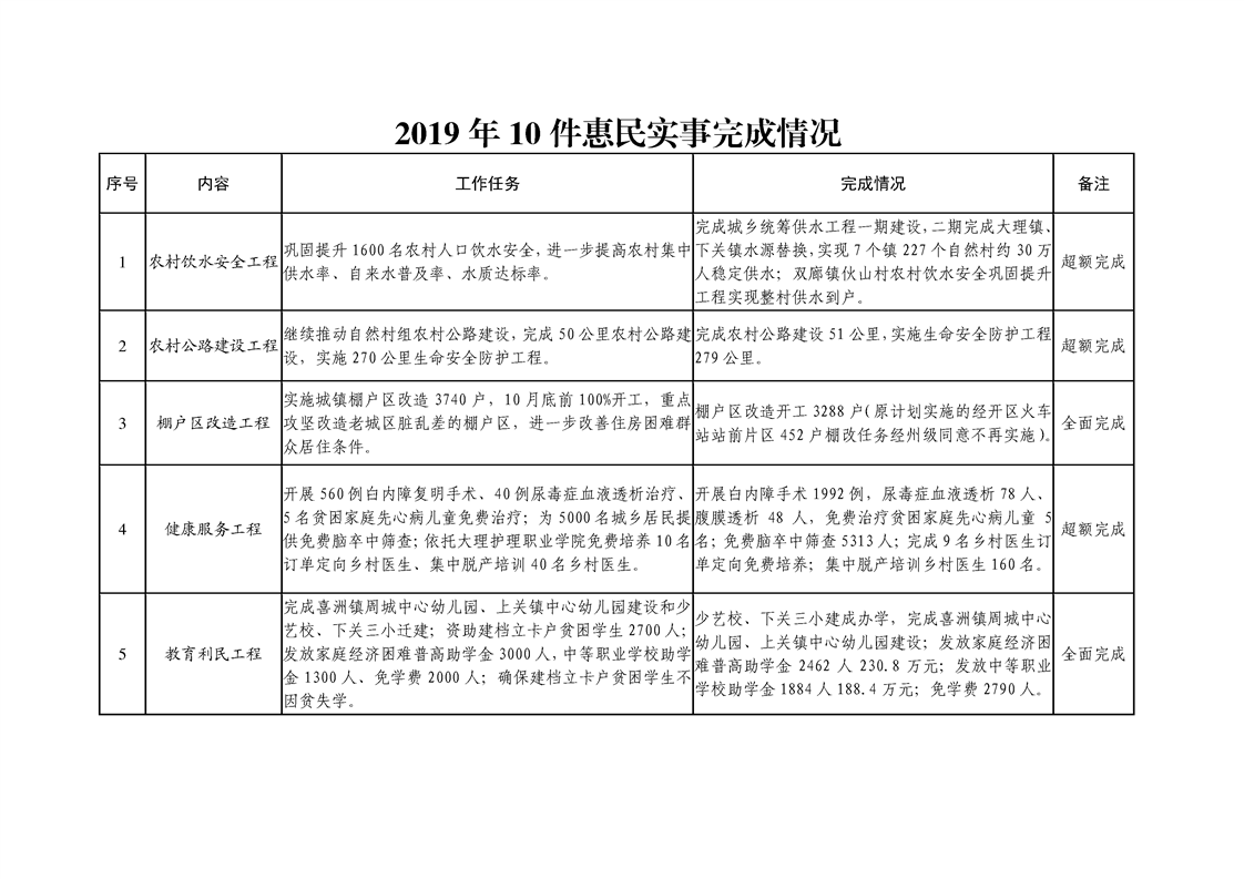 2019年政府工作报告10件惠民实事完成情况