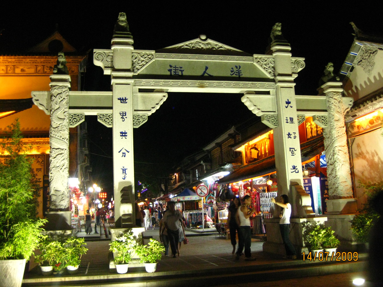 晚风吹拂,气候怡人。整个古城灯火通明,洋人街更是熙熙攘攘。游客很多,购物的,闲逛的,喝酒的,都是一幅逍遥世外的神态。有很多老外也来这里度假。去时碰上一对外国情侣,回来时又碰上他们,也不进铺子也不买东西,就这样来回溜达。这使我想起了泰国的芭提雅,琳琅的商品,闪烁的灯光,悠闲的步伐,浪漫的气氛都是那么的相似。