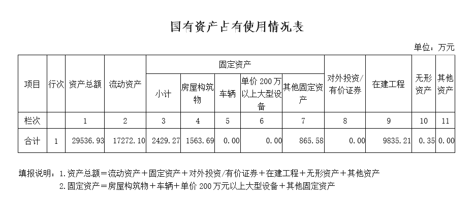 截至2019年12月31日,大理创新工业园区文化教育服务中心部门资产总额29,536.93万元,其中,流动资产17,272.10万元,固定资产2,429.27万元,对外投资及有价证券0.00万元,在建工程9,835.21万元,无形资产0.35万元,其他资产0.00万元(具体内容详见附表)。与上年相比,本年资产总额增加24,579.26万元,其中流动资产增加15,031.14万元,固定资产减少15.63万元,对外投资及有价证券增加0.00万元,在建工程增加9,563.40万元,无形资产增加0.35万元,其他资产增加0.00万元。房屋建筑物0.00平方米,账面原值0.00万元;处置车辆0辆,账面原值0.00万元;报废报损资产1396项,账面原值169.08万元,实现资产处置收入0.38万元;出租房屋0.00平方米,账面原值0.00万元,实现资产使用收入0.00万元。