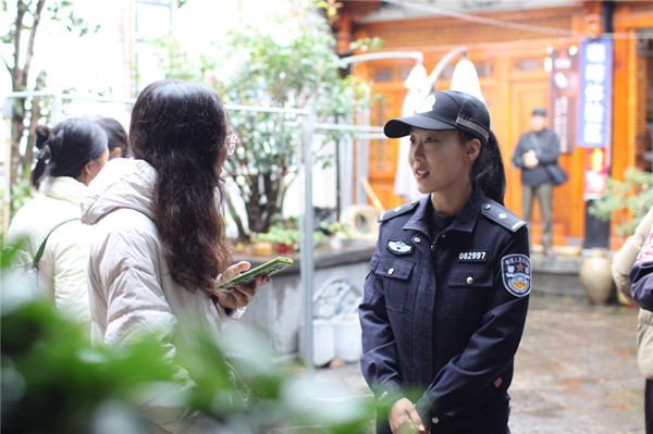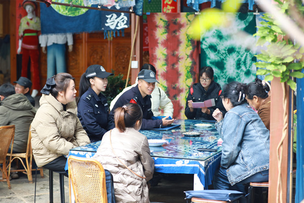 “作为网红旅游地,近年来,喜洲古镇每日慕名而来的游客络绎不绝,派出所合理安排,确保景区、景点以及社会面都有警力,切实增强了见警率,提升了群众和游客的满意度、安全感。”在喜洲派出所周城旅游快警点,教导员段祖德介绍着喜洲派出所旅游警务开展情况。通过派出所旅游快警点警务的实践,如今,在喜洲古镇的每一条大街小巷和网红旅游打卡点,随时都能看到人民警察的身影,“进来坐”“来喝杯水”等这样质朴的白族话在警察和乡亲之间传递着,旅居喜洲的中外游客对公安机关的工作充满了信任和赞许。