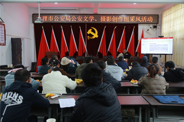11月8日,大理市公安局文学摄影创作组在喜洲镇组织采风活动。此次活动有幸邀请到了大理市作家协会部分会员和巍山、鹤庆等县公安局同仁参加,市作协副主席隆林刚还结合自身写作经验现场给大家作交流授课。