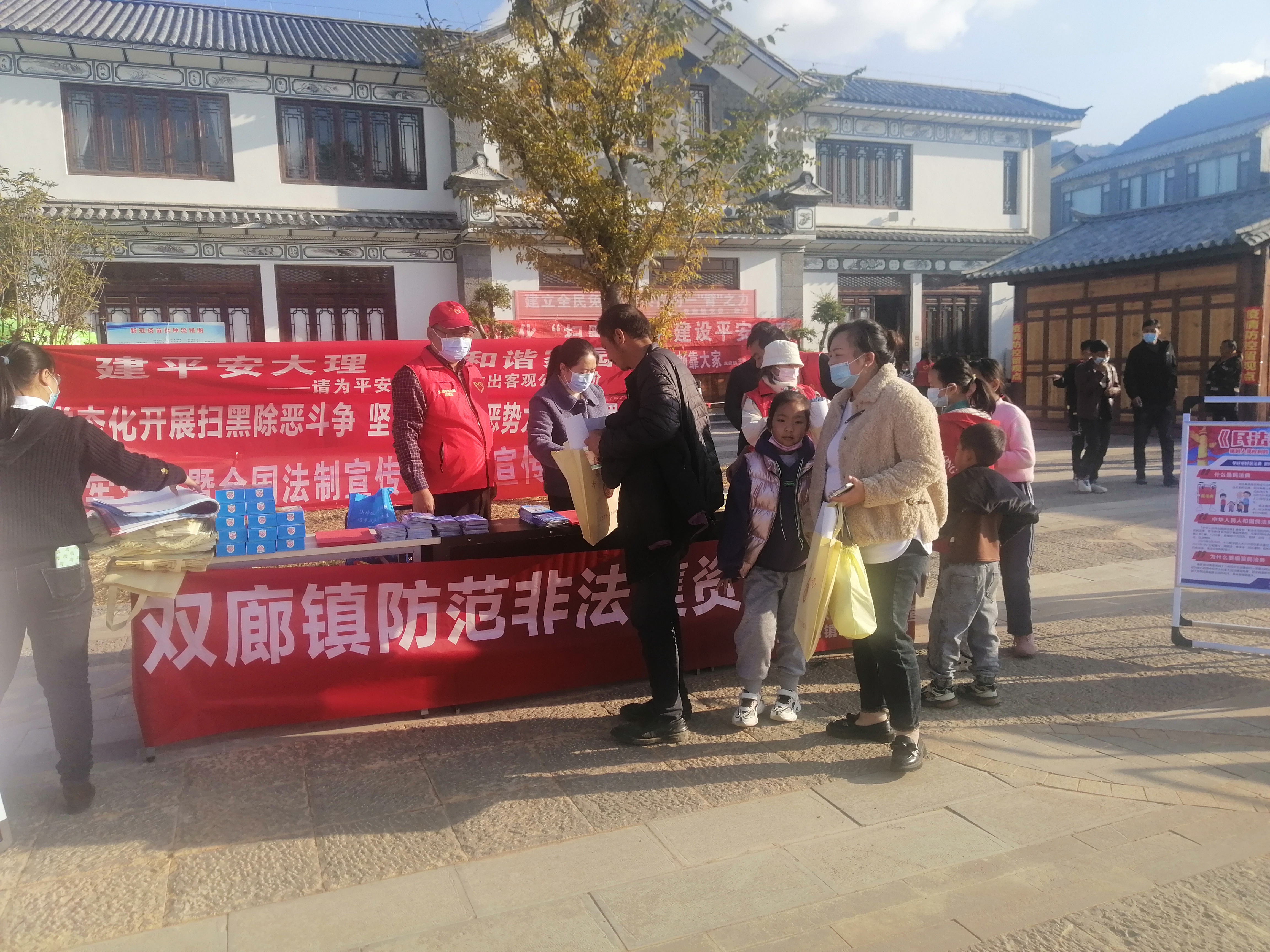 双廊司法所、镇综治办、镇信访办、镇社会事务办等部门在双廊镇北游客中心疫苗接种点利用疫苗接种人流量大的机会开展宣传。通过设立咨询台细致讲解、悬挂宣传横幅、摆放《中华人民共和国民法典》宣传展板、发放宣传资料等方式,对宪法知识、民法典内容以及群众安全感满意度调查、扫黑除恶、防邪反邪、禁毒防艾、预防青少年违法犯罪、反电信诈骗等工作进行宣传,形成人人学法、人人守法、人人用法的良好氛围,切实践行社会主义法治文化建设要求。