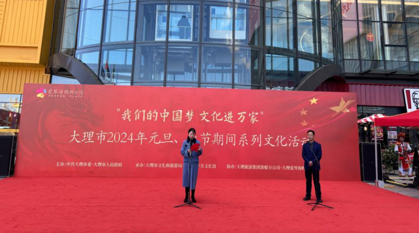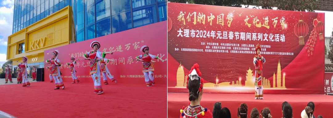 为深入贯彻党的二十大精神和习近平文化思想,丰富人民群众元旦、春节期间文化生活,营造欢乐祥和、喜庆热烈、文明向上的浓厚节日氛围,2024年新年伊始大理市下关文化馆分别在爱琴海购物广场和凤仪镇石龙村于举办了两场“‘我们的中国梦·文化进万家’大理市2024年元旦、春节期间系列文化活动”。