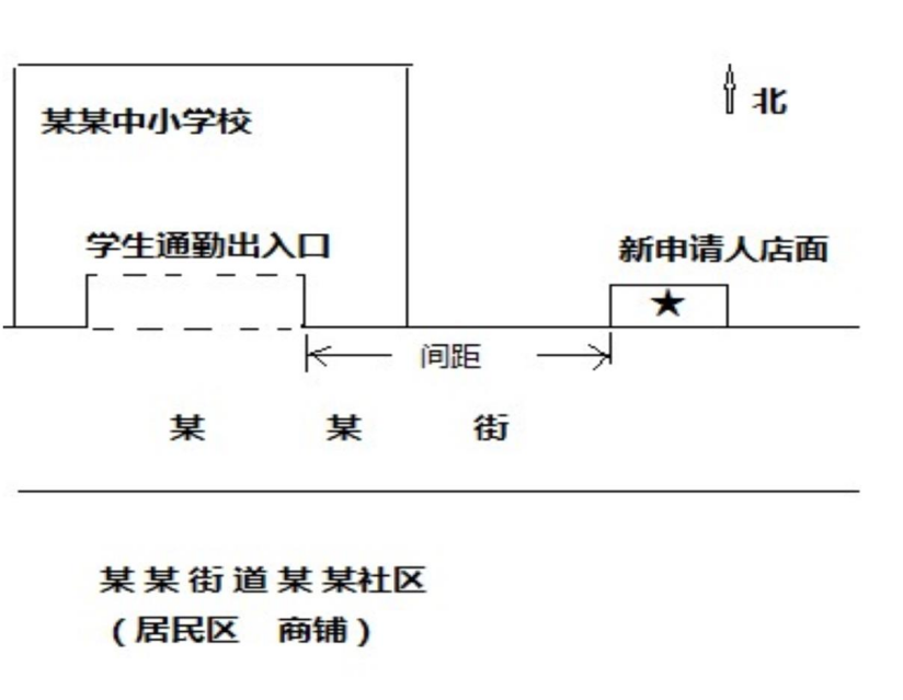 (2)新申请人与测量参照物(中小学校、幼儿园学生通勤出入口)之间。