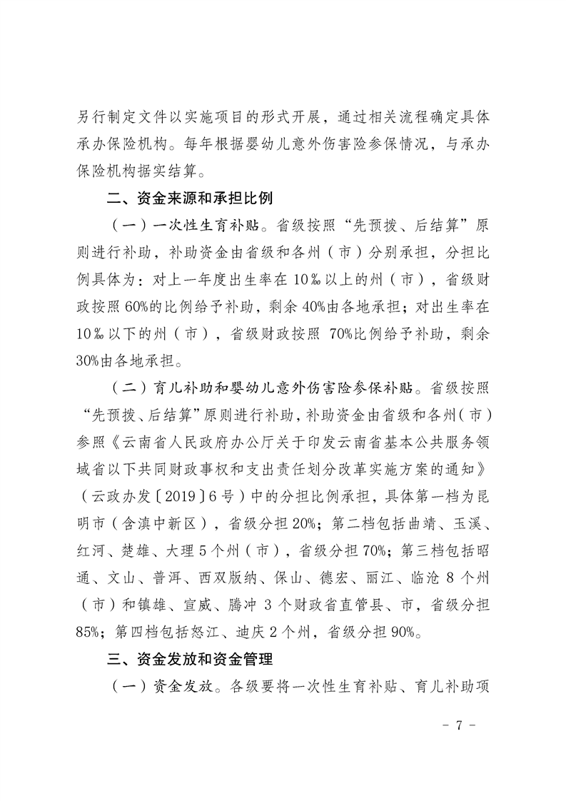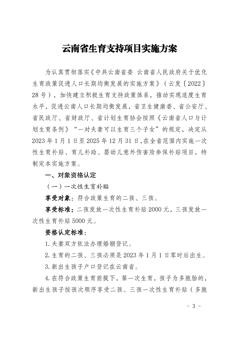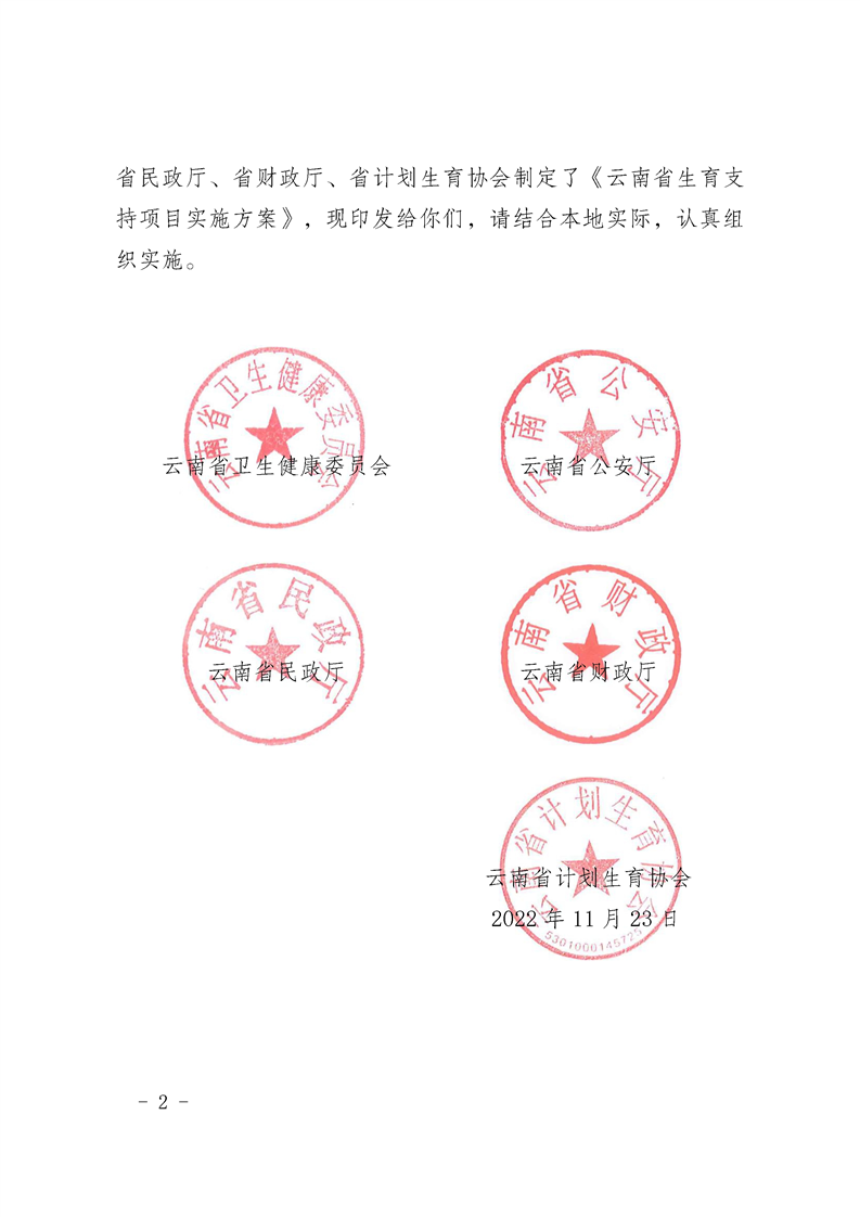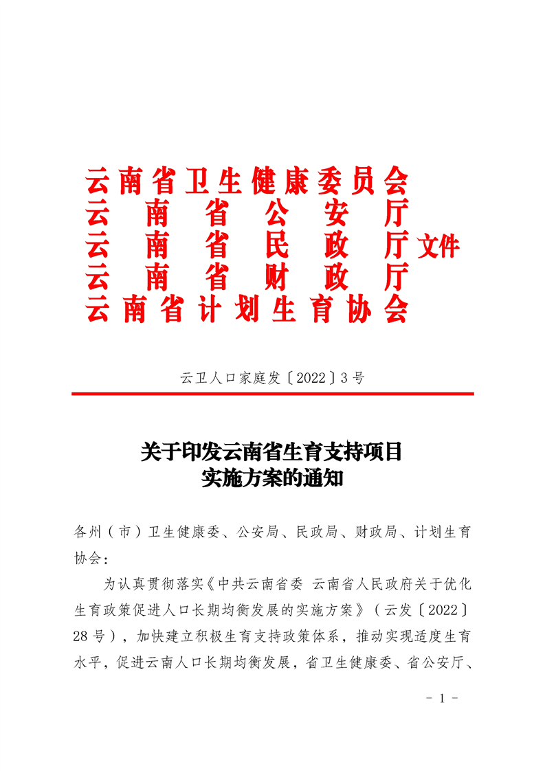关于印发云南省生育支持项目实施方案的通知