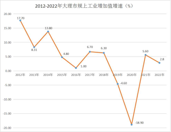 2022年,全市全部工业增加值114.55亿元,比上年增长2.2%。其中,规模以上工业增加值增长2.8%。分经济类型看,国有及国有控股企业增长2.7%,股份制企业增长4.2%,私营企业增长31.9%。分门类看,制造业增长3.2%,电力、热力、燃气及水的生产和供应业增长0.8%。