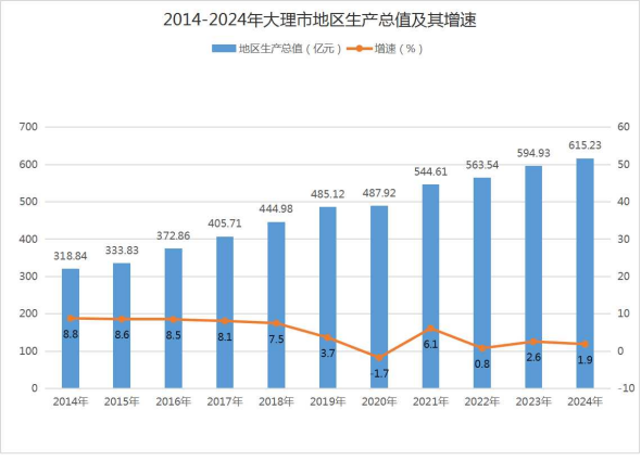 2024年是中华人民共和国成立75周年,是实现“十四五”规划目标任务的关键一年。全市上下坚持以习近平新时代中国特色社会主义思想为指导,深入学习贯彻习近平总书记考察云南重要讲话和对大理工作的重要指示批示精神,在省州党委、政府和市委、市政府领导下,锚定“3815”战略发展目标,坚持稳中求进工作总基调,全面贯彻新发展理念,积极服务和融入新发展格局,全市经济运行总体平稳,高质量发展稳步推进。