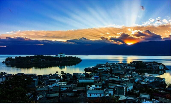 大理南诏风情岛是洱海三岛之一,位于苍洱国家级风景名胜区双廊乡境内。该岛四面环水,岛上风光无限,海天一色,苍洱百里壮景尽收眼底,素有“大理风光在苍洱,苍洱风光在双廊”之美誉。