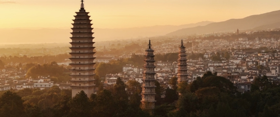 崇圣寺三塔位于云南省大理古城西北部1.5公里处,西靠烟云变幻的苍山应乐峰,东临碧波浩渺的洱海。