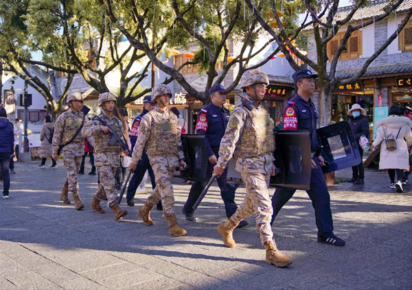 在大理古城大街小巷有这样一道不一样的风景线,这是大理市公安局民警和武警官兵强强联合、整齐着装,共同担负巡逻勤务。这是“藏蓝”和“迷彩”的相互映衬,多一份力量就多一份保障,多一点责任就多一份稳定,只为守护古城平安。