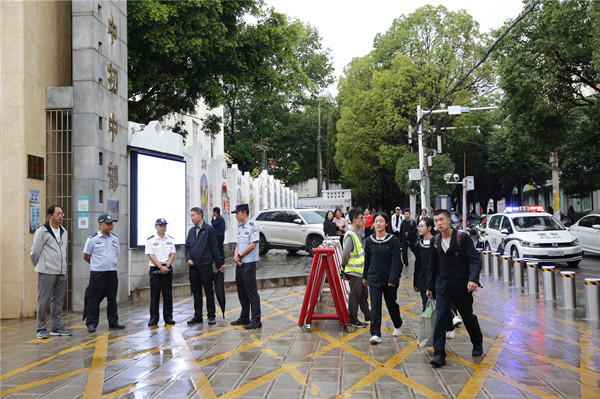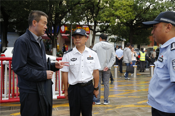 7时10分,芮灿杰来到下关一中初中部实地查看了学校门口交通安全设施、“一键报警”装置运行、校门口道路斑马线以及“学生专用通道”等标志标识建设情况,在学生上学进校园的高峰期,芮灿杰与护学民警一道现场维持出入秩序,守护学生出行安全。