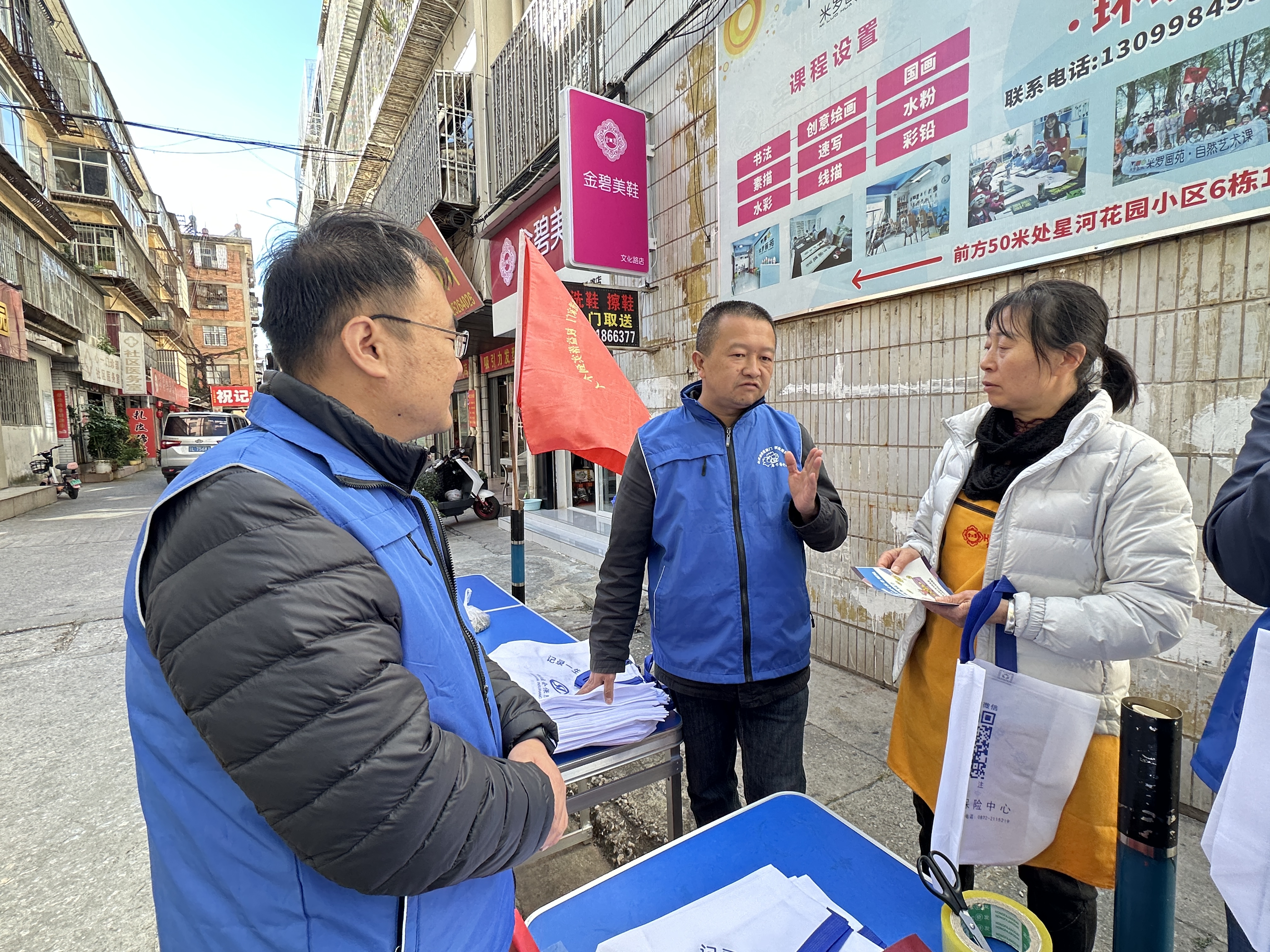 “我是来自浙江省的生意人,在大理经商好多年了,一直想着给自己买一份养老保险,将来老了有个保障,但由于我不懂政策又没有时间去社保咨询,就一直没有办理,今天社保和社区的工作人员来到这里宣传,我的所有问题和疑惑都得到了满意的回复,我也可以在大理市参加企业职工养老保险,过几天我就去街道办理,真的非常感谢他们。”文化路商铺张老板开心的说到。