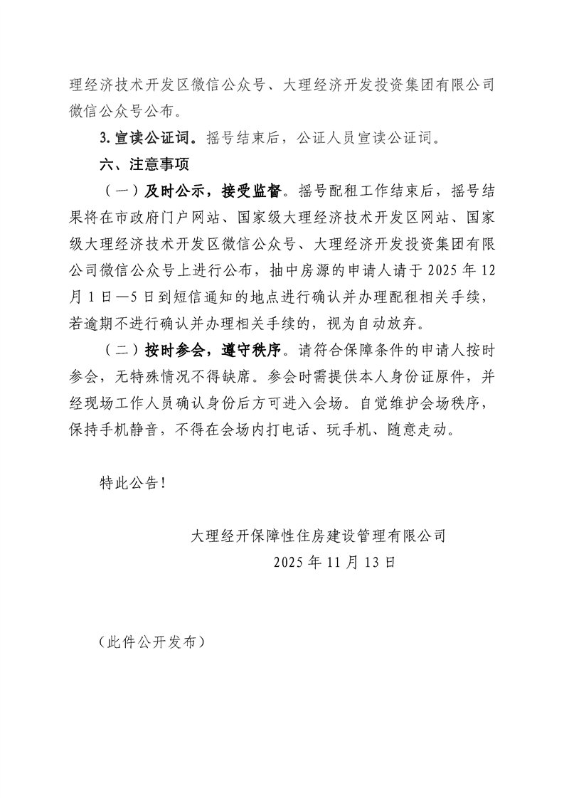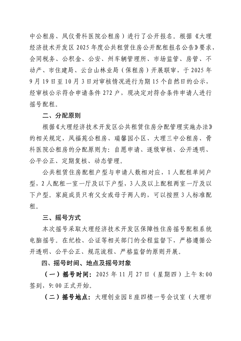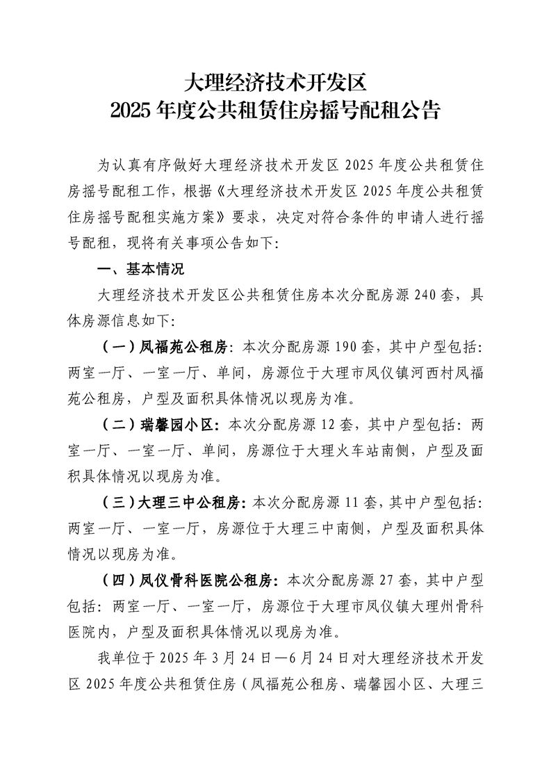 大理经济技术开发区2025年度公共租赁住房摇号配租公告