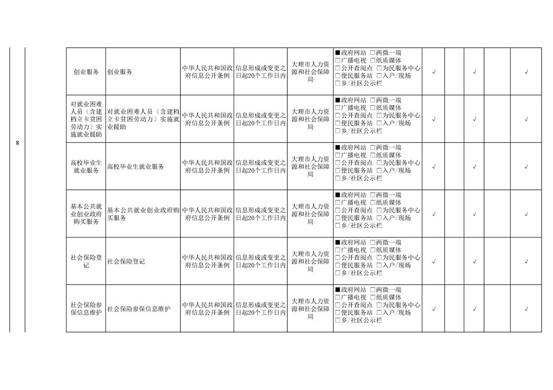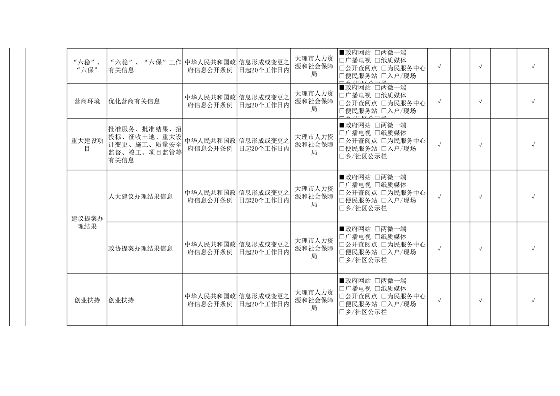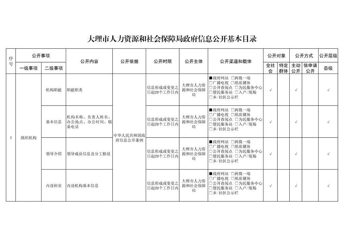 大理市人力资源和社会保障局政府信息公开基本目录